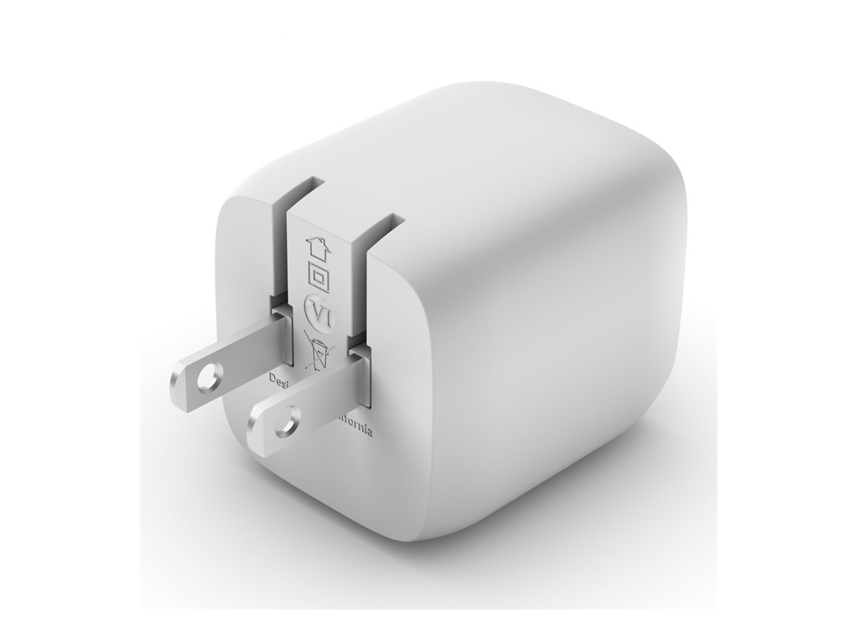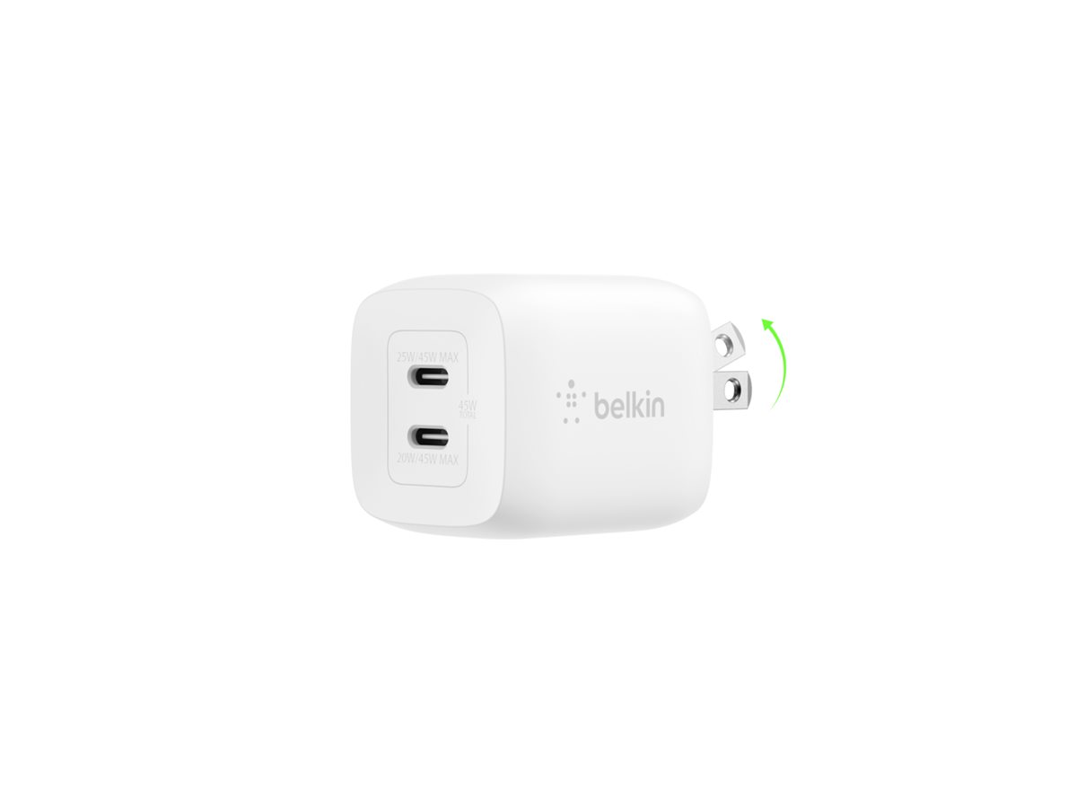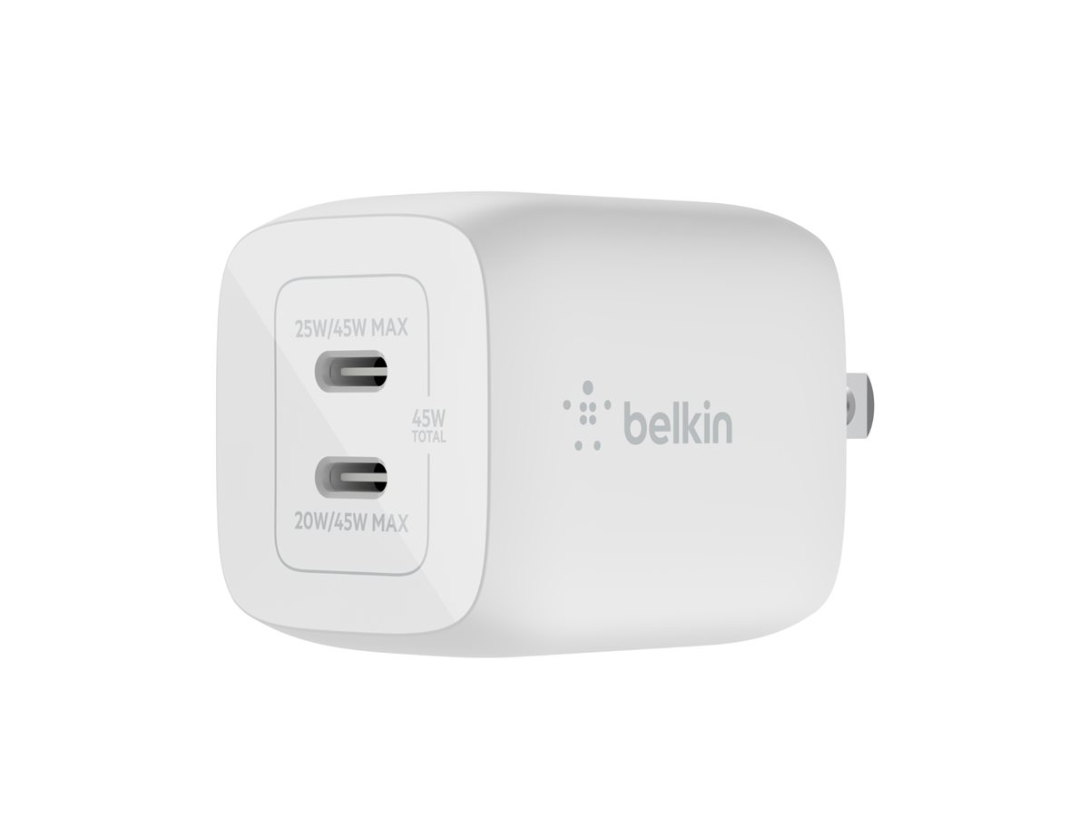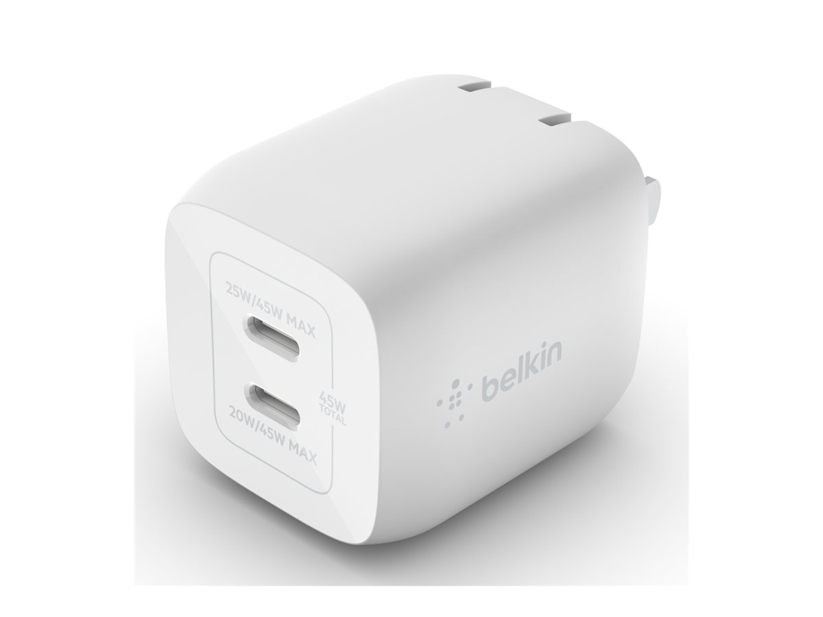 Belkin – Adaptador de corriente – tecnología PPS y GaN – 45 vatios – 3 A – Fast Charge, PD 3.0 – 2 conectores de salida (2 USB-C) – blanco
